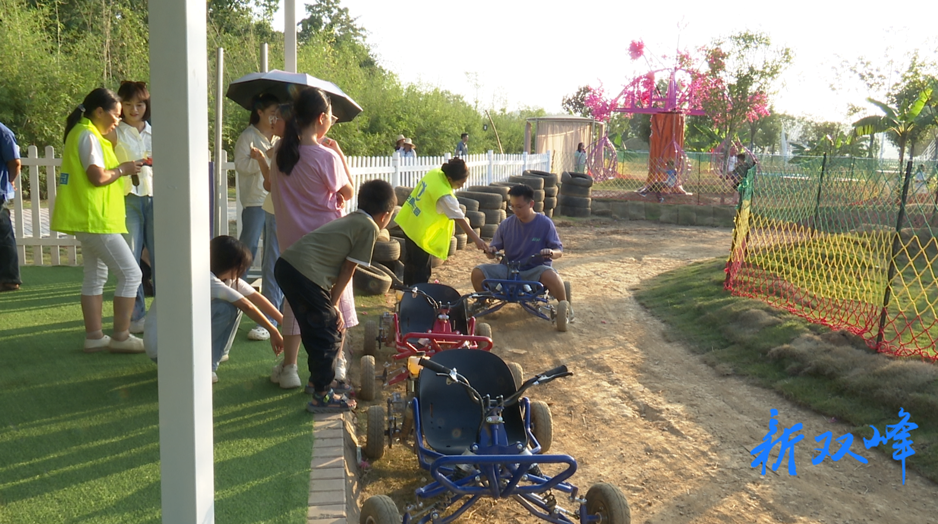 试营业期间,园区内氛围轻松惬意,游人陆续前来,欢声笑语不断。在萌宠乐园,孩子们兴奋地观察小动物;红色微演剧场前,游客凝神聆听双峰英雄故事的生动演绎;水上运动区,桨板、皮划艇、水上卡丁车等项目吸引众多年轻人挑战体验;轻奢营地和帐篷露营区则成为家庭游客休闲放松的理想场所。众多游客手持相机,在湖畔民宿、无边泳池等地打卡留念,记录美好瞬间。