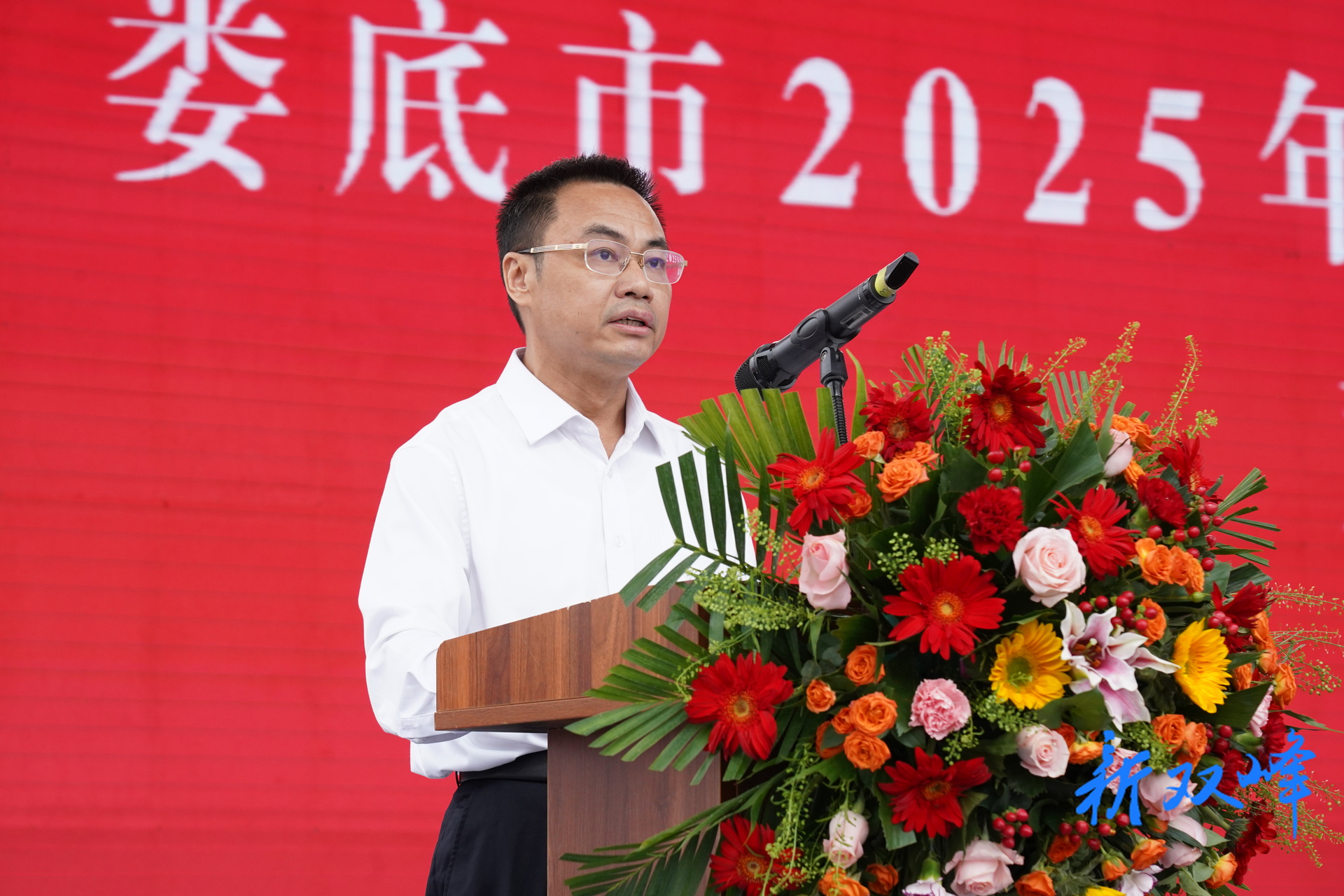 李基联在致辞中指出,全球娄商大会是凝聚娄商力量、赋能家乡发展的重要平台,双峰作为娄商投资的热土,积极融入、主动对接中部地区“材料谷”战略,秉持“项目为王”的理念,全力以赴谋项目、引项目、推项目,形成了“签约一批、开工一批、投产一批”的滚动发展格局。参加双峰开工投产仪式的26个娄商投资项目,涵盖智能制造、现代农业、生物医药等领域,“含金量、含绿量、含新量”十足,必将为双峰高质量发展注入强劲动能。他强调,全县各级各都门要坚持一切围绕项目转、一切盯着项目干,以最大诚意、最优政策、最佳环境,推动项目建设提速提质提效,让每一位投资双峰的娄商创业安心、发展顺心。