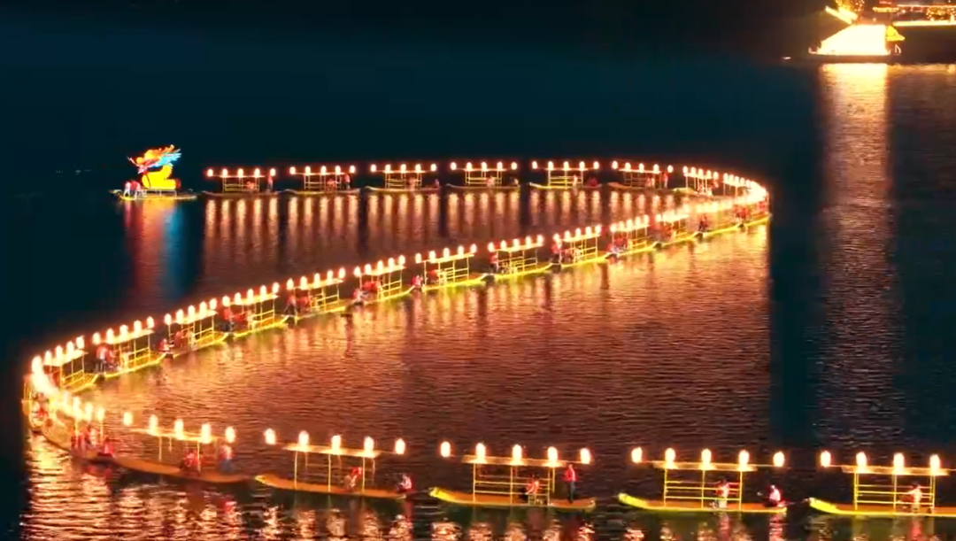 ▲“板板龙灯”水上夜游。(寇彪/摄)