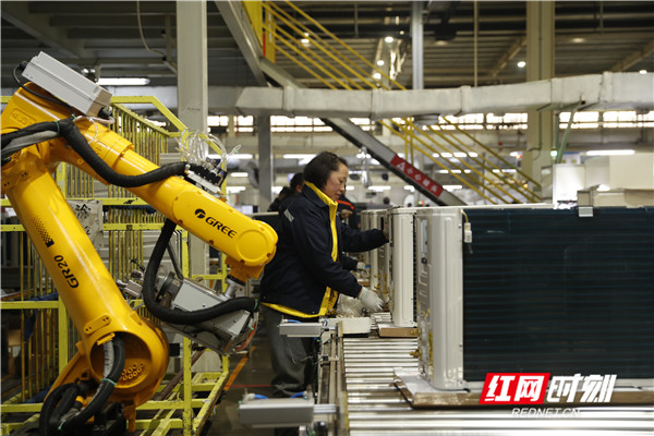 ▲近年来,宁乡智能家电智能硬件产业链发展迅速,图为格力暖通的智能化生产线。