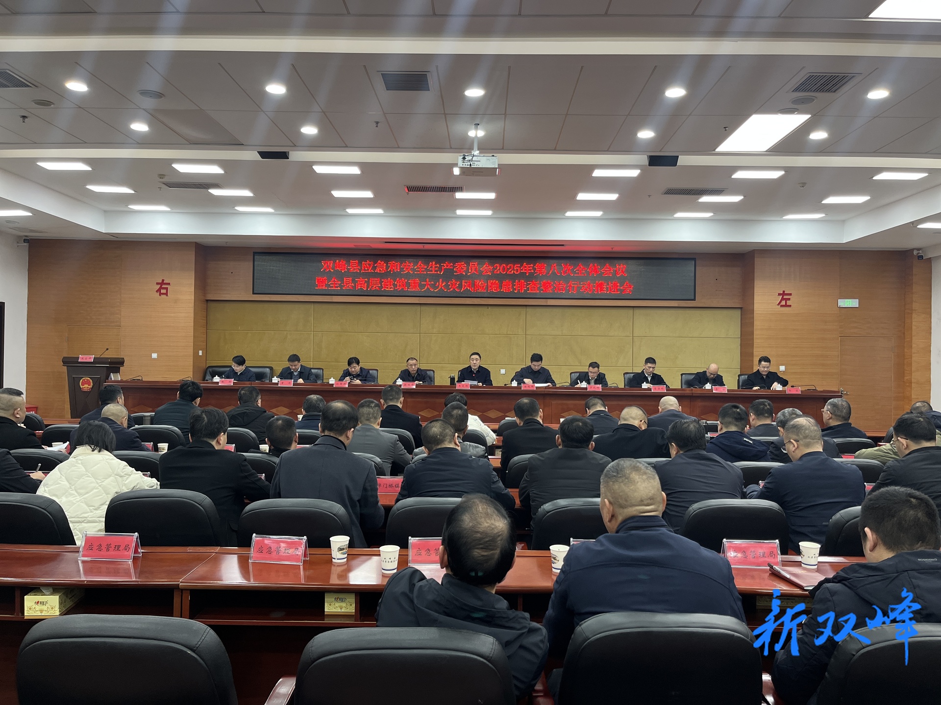 新双峰客户端12月31日讯(全媒体记者 李正炎 吴勇波)12月30日,双峰县应急和安全生产委员会2025年第八次全体会议暨全县高层建筑重大火灾风险隐患排查整治行动推进会议召开,县委副书记、县长、县应安委会主任王文红主持会议并讲话。会议深入分析当前安全生产形势,通报相关整治工作进展,对切实做好岁末年初安全生产各项重点工作进行安排部署。