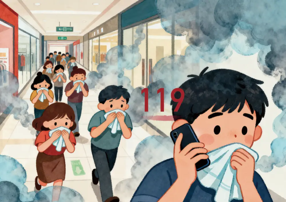 3.必须穿过浓烟逃生时,尽量用浸湿的衣物保护头部和身体,捂住口鼻,弯腰低姿前行。