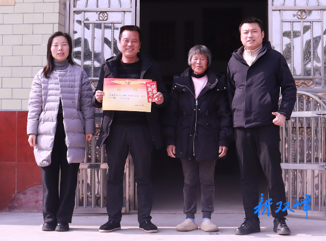 新双峰客户端2月4日讯(通讯员 朱明得 肖孝葵)2月3日,印塘乡退役军人事务服务中心工作人员在分管领导带领下,分赴全乡8户“四有”优秀士兵家庭,送去喜报与慰问金,将尊崇与关爱送到军属心坎上。