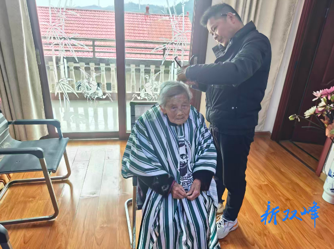 新双峰客户端2月11日讯(通讯员 朱洁)近日,洪山殿镇双桥村联合村妇联开展 “爱心义剪送温暖” 志愿活动,免费为辖区高龄、行动不便老人上门理发,架起为民连心桥。