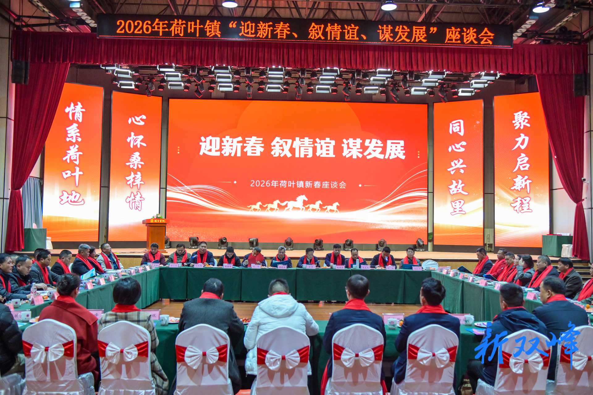 新双峰客户端2月27日讯(通讯员 孙彪)近日,荷叶镇召开“迎新春、叙情谊、谋发展”知名人士座谈会,各界荷叶籍知名人士代表欢聚一堂,共叙乡情、共商发展。县委常委、宣传部部长吴晔出席并讲话,镇党委书记刘双伟致辞,镇党委副书记、镇长刘政主持会议。