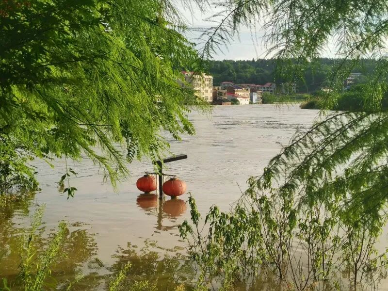 △城中湄水河风光带,洪水涨至灯笼处。李际 摄