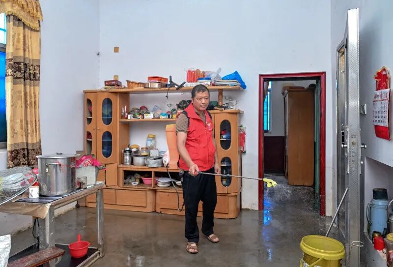 △7月29日,洪水退后,志愿者在村民家中消杀。刘新山 摄