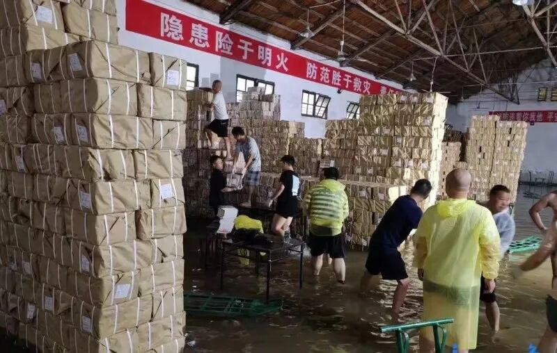 △双峰新华书店仓库发生内涝,双峰县委宣传部组织相关人员迅速投入抢救书籍的战斗中。赵冠豪 摄