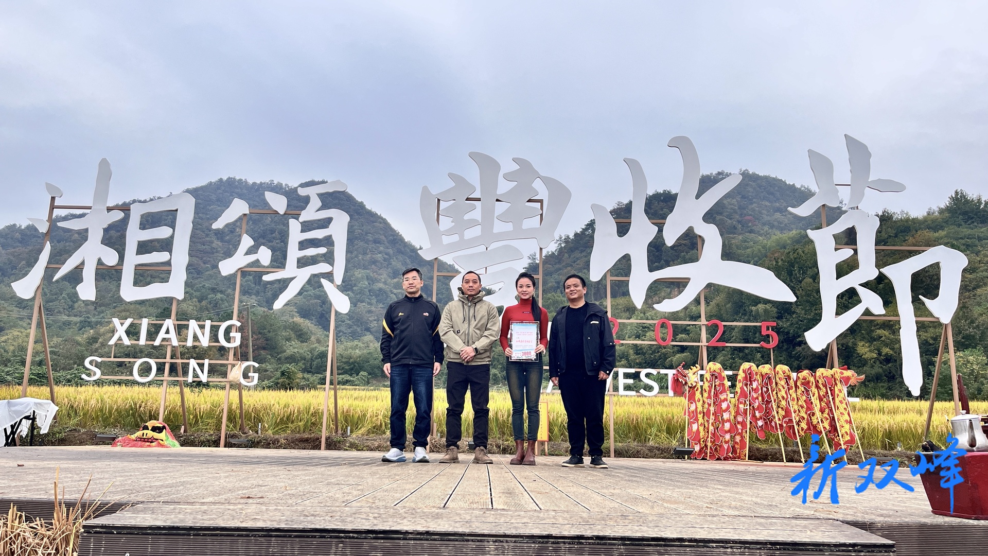 仪式在热烈喜庆的氛围中拉开帷幕,现场不仅弥漫着稻谷的清香,更涌动着数字时代助力乡村发展的蓬勃活力。活动现场,湘颂丰收节系列活动如火如荼地进行,金黄的稻谷、丰富的农产品展示以及极具地方特色的歌舞民俗表演,吸引了众多游客与村民驻足观赏,欢声笑语与丰收的喜悦交织在一起,共同庆祝这硕果累累的季节。在激昂的乐曲和热烈的掌声中,吴晔为一等奖获得者朱鹏、田园、龙颖等颁奖,县政协党组副书记、副主席王贵祥,县政协副主席肖晓琳共同为二等奖获得者肖克书、彭璐璐颁奖。此外,还颁发了三等奖、最佳带货主播奖、最美镜头奖及优秀奖等多个奖项,充分表彰了创作者们在内容创作和电商助农领域的卓越贡献。