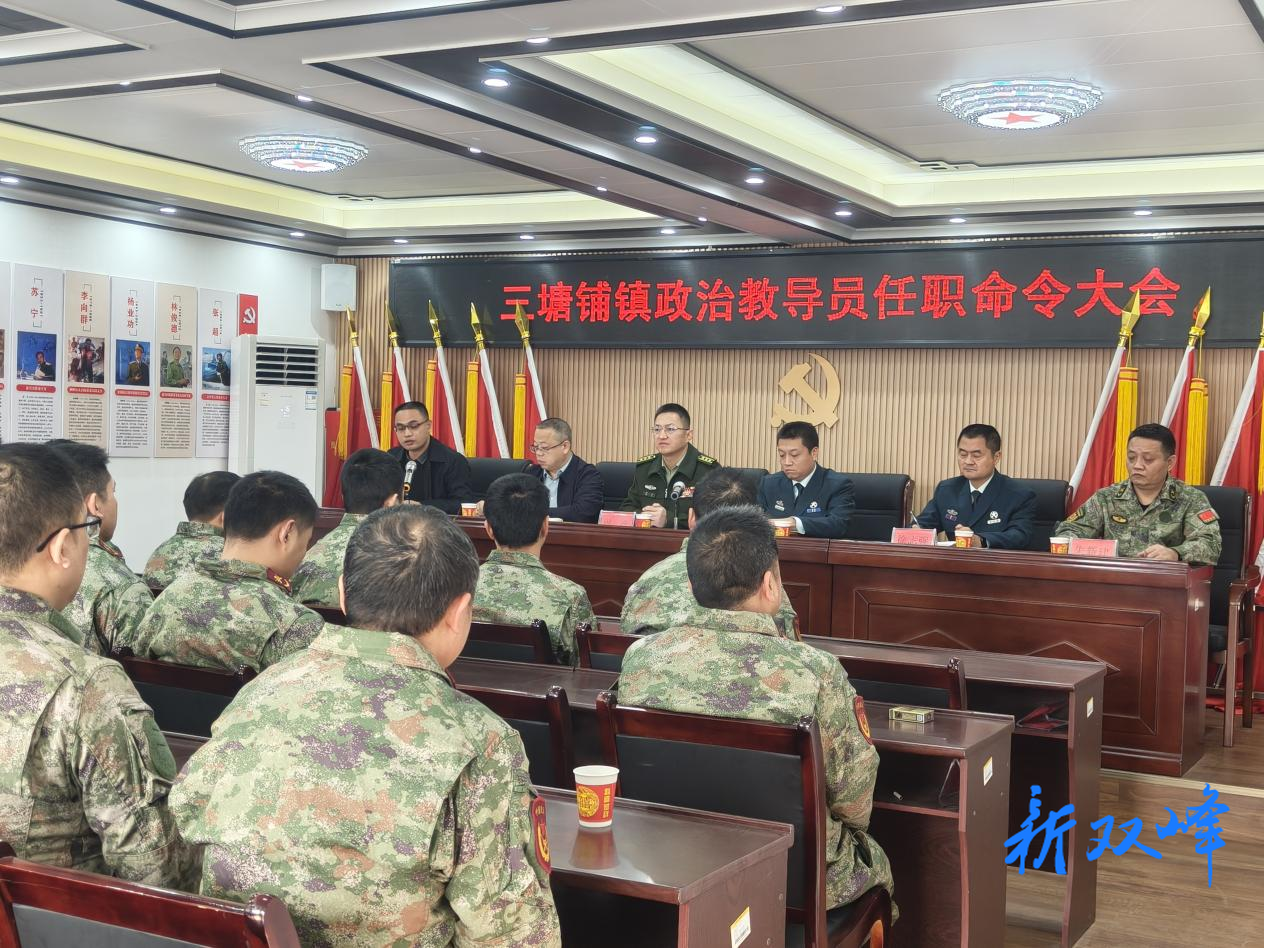 新双峰客户端11月28日讯(通讯员 蒋帅)近日,三塘铺镇召开镇武装部政治教导员任职命令大会,县委常委、人武部部长周彦出席会议并讲话。镇党委书记朱晓涛、镇党委副书记贺优良及全镇民兵参加会议。