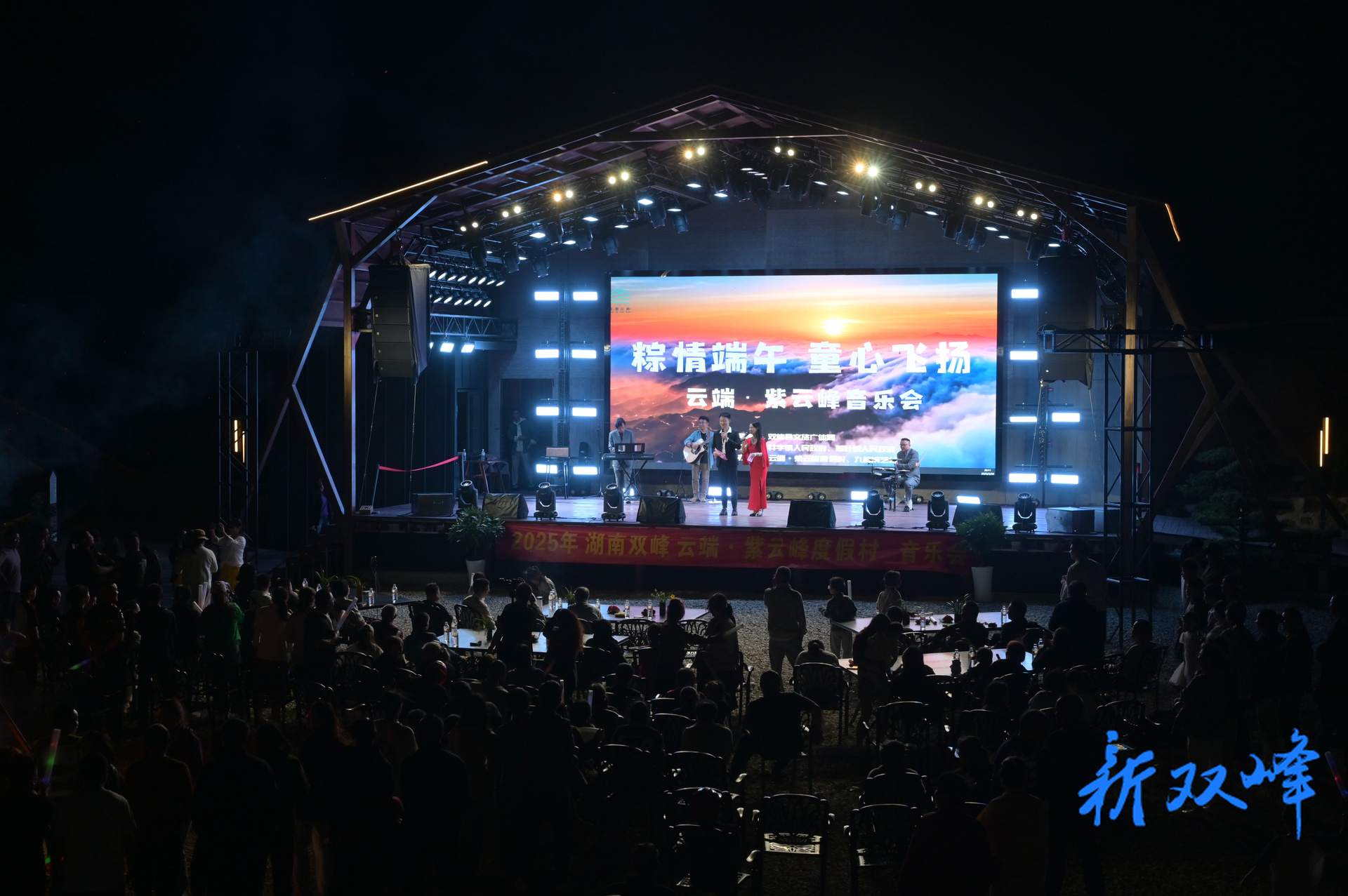 新双峰客户端5月31日讯(通讯员 毛隽婕)5月30日晚,双峰县云端紫云峰景区露天音乐场灯火通明,以“粽情端午 童心飞扬”为主题的音乐会在此举行。此次活动将传统端午文化与现代艺术表演相结合,吸引了约2000名当地村民、游客和小朋友参与,现场气氛热烈欢快。