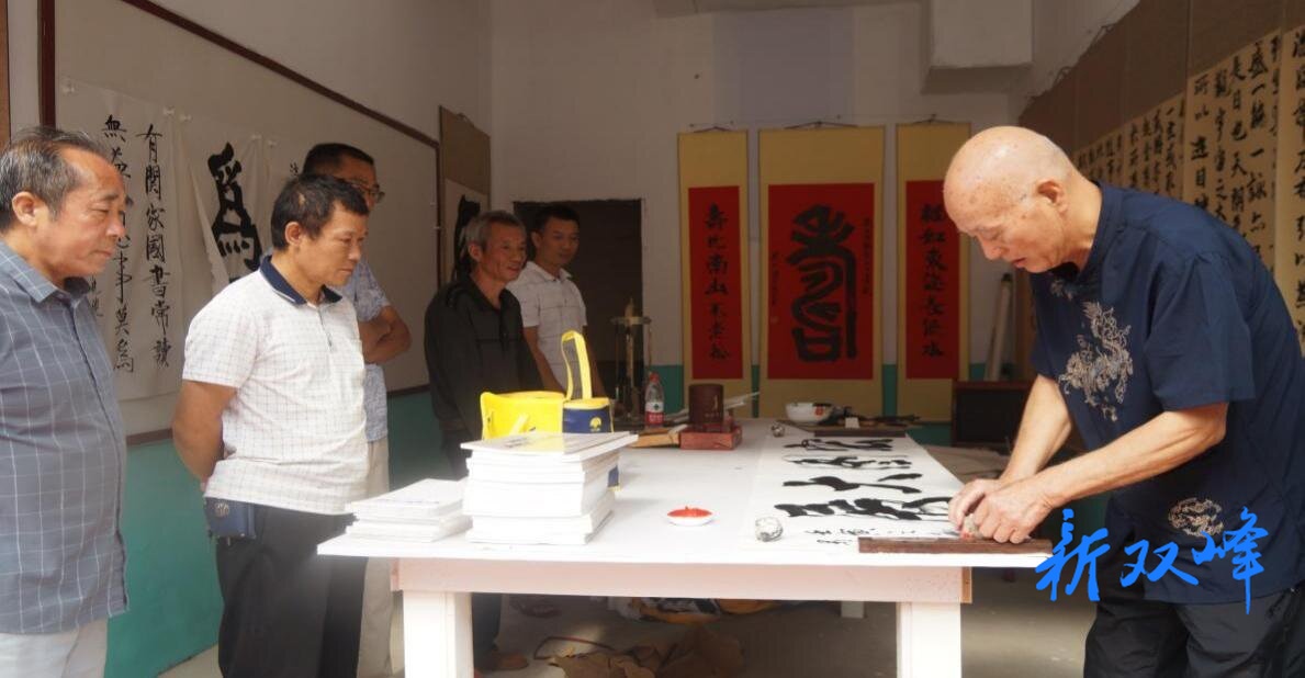 新双峰客户端3月8日讯(通讯员 李水平 王展)3月8日,双峰县走马街镇赶集日,书画老师们早早来到了“书画一条街”工作室,开始了书法创作。不一会儿,过路的群众和书画爱好者陆续来到工作室,观赏老师们的精品力作,有的还拿笔跃跃欲试。