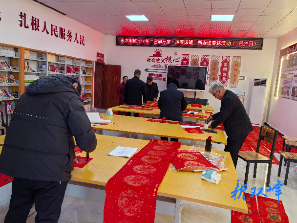 新双峰客户端1月27日讯(通讯员 刘伟平 赵咏梅)1月25日,永丰街道文联组织辖区书法家及书法爱好者,在街道新时代文明实践所开展“艺润万家·挥春送福”写春联、送祝福活动。