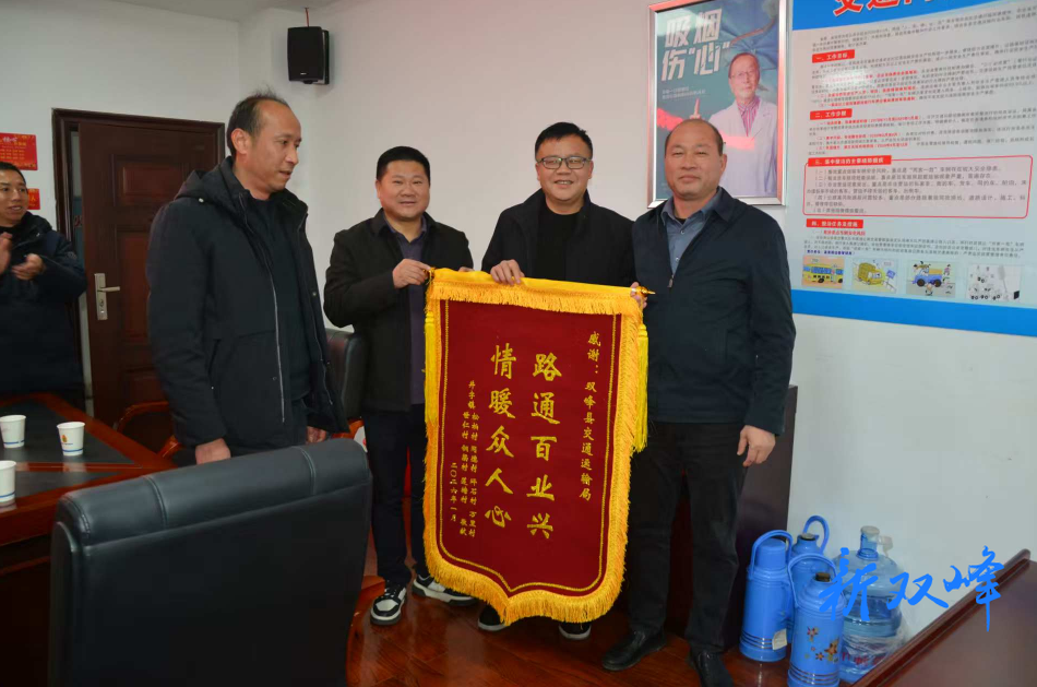 新双峰客户端1月29日讯(通讯员 刘宜龙 陈勇波)S222线井字段顺利通车,彻底打通沿线群众出行“堵点”与乡村发展“卡点”。1月28日,井字镇沿线7个行政村联合向双峰县交通运输局赠送“路通百业兴,情暖众人心”锦旗,以质朴方式表达对交通部门办实事、解民忧的诚挚谢意。