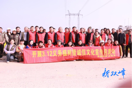 新双峰客户端3月17日讯(通讯员 胡林军)3月12日,双峰县林业局组织干部职工在印塘乡新大桥村开展义务植树暨诚信文化宣传月主题活动,以实际行动为美丽双峰增添新绿,播撒诚信种子。