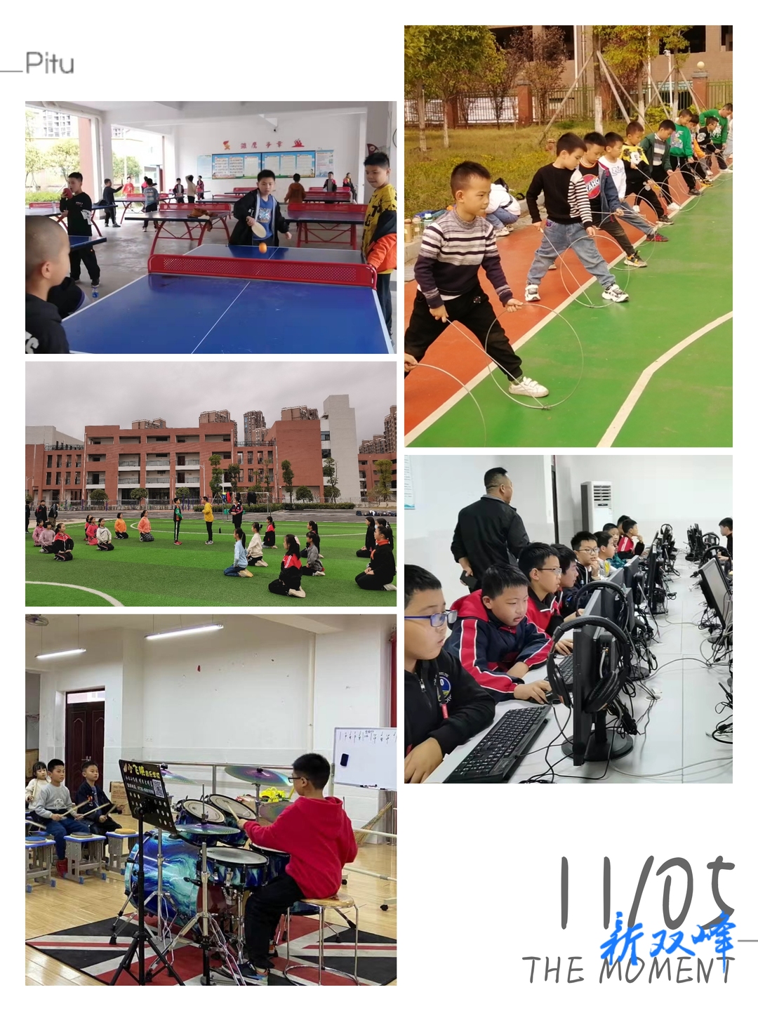 学校全面推进课后服务,保障“5+2”服务时间,充分挖掘教师潜力和现有资源,突出特色服务。除了在知识上为学生答疑解惑,学校还组建了声乐、美术、武术、篮球、足球、书法、架子鼓、编程、体能等兴趣社团,拓展了学习空间,满足了学生不同的学习需求,实现德智体美劳全面发展的培训目标,也让学生的童年生活丰富多彩,绽放活力。