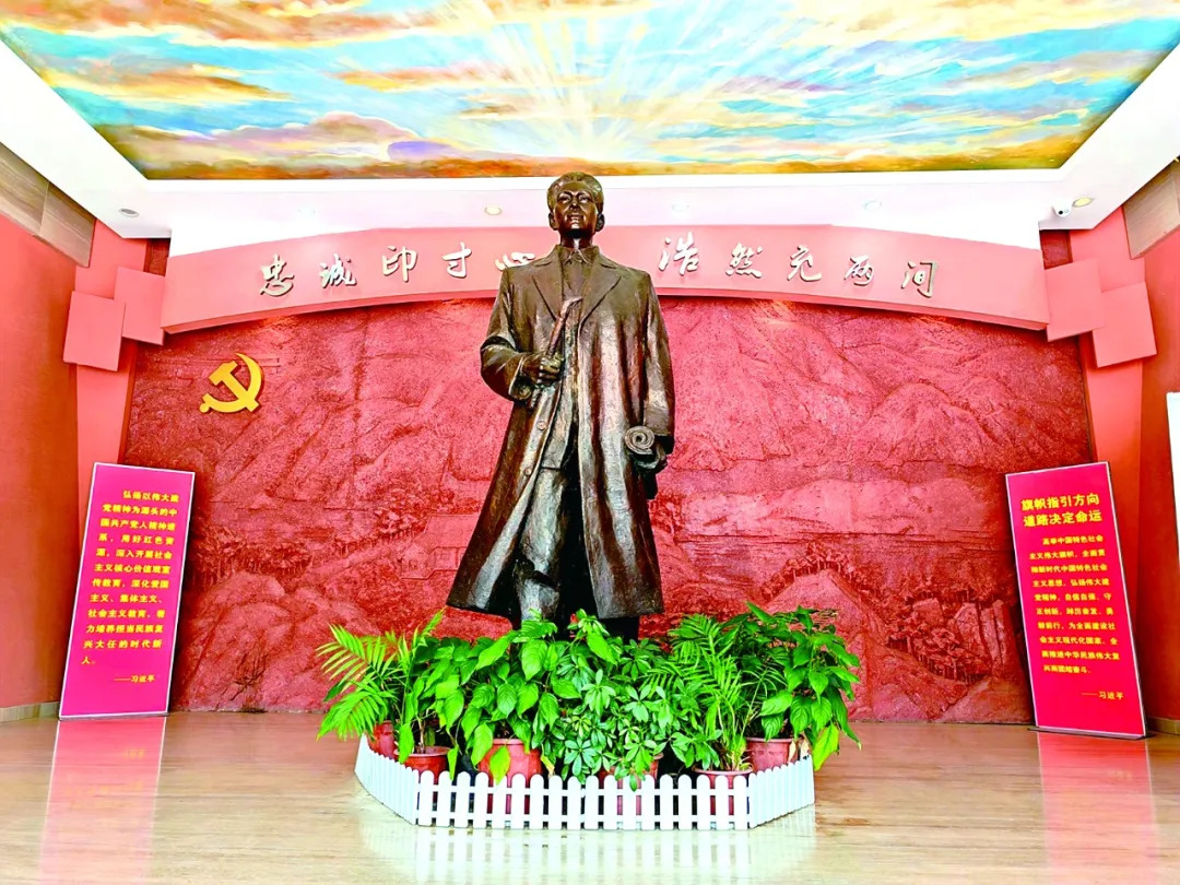 位于湖南省双峰县的蔡和森纪念馆,浓缩了蔡和森救国救民、英勇奋斗的生平事迹。他23岁写下的“忠诚印寸心,浩然充两间”,成为纪念馆的主题。图为蔡和森纪念馆展厅蔡和森“利刃”雕像。 胡锡德 摄