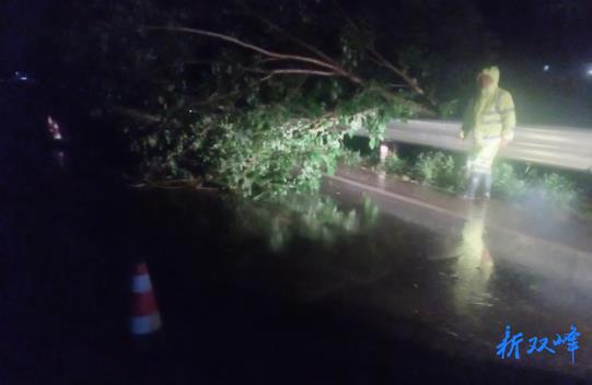 新双峰客户端4月30日讯(通讯员 肖亚娟 李书元)全市启动防汛四级应急响应以来,双峰县公路建设养护中心严格落实24小时防汛值班备勤制度,始终绷紧道路安全保通责任弦,以快速响应、高效处置筑牢公路安全防线。4月28日夜间,该中心成功快速处置G234国道大树倒伏突发险情,及时消除道路安全隐患,保障群众夜间出行安全。