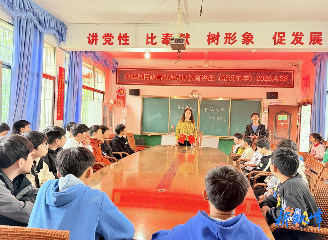 新双峰客户端4月30日讯(通讯员 刘採吉)4月28日,双峰县民政局联合慧莲心理咨询服务中心,到石牛乡常汉中学开展“直面危机,幸福成长”主题心理健康教育讲座,以专业优质社会心理服务力量筑牢校园心理安全坚固防线。